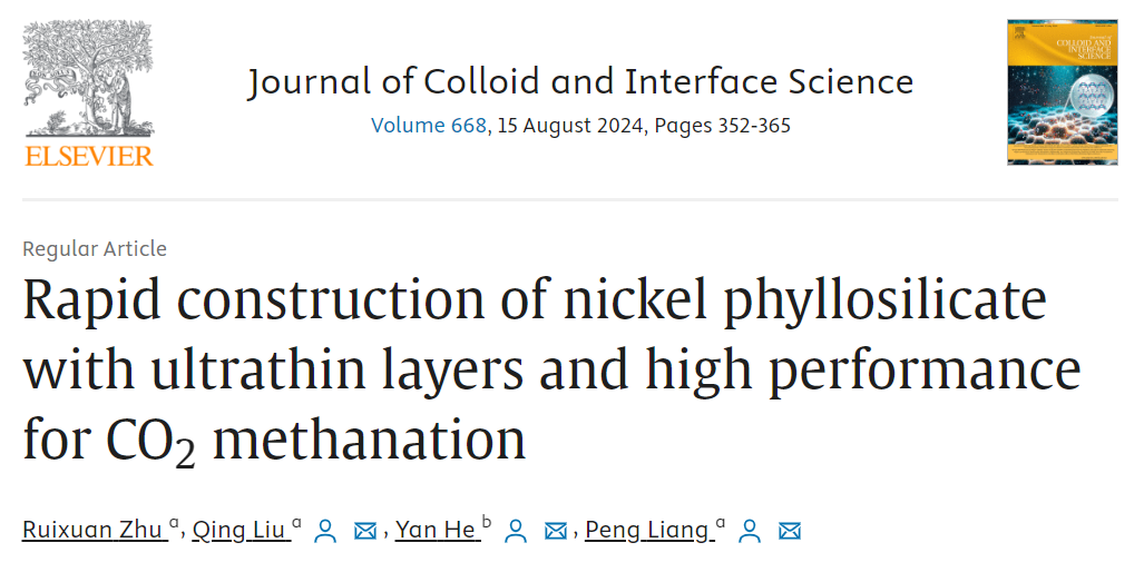 文章信息:R. Zhu, Q. Liu(刘庆)*, Y. He*, P. Liang(梁鹏)*, Rapid construction of nickel phyllosilicate with ultrathin layers and high performance for CO2 methanation, Journal of Colloid and Interface Science 668 (2024) 352–365.